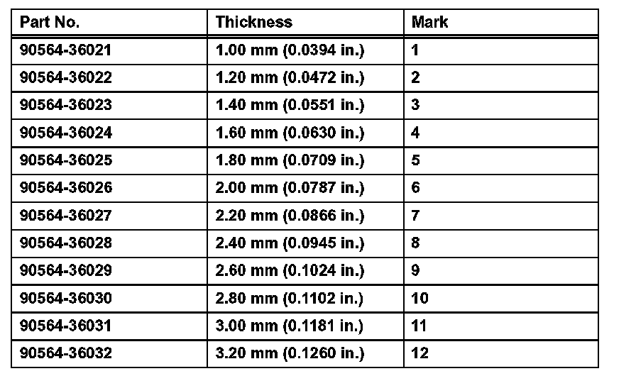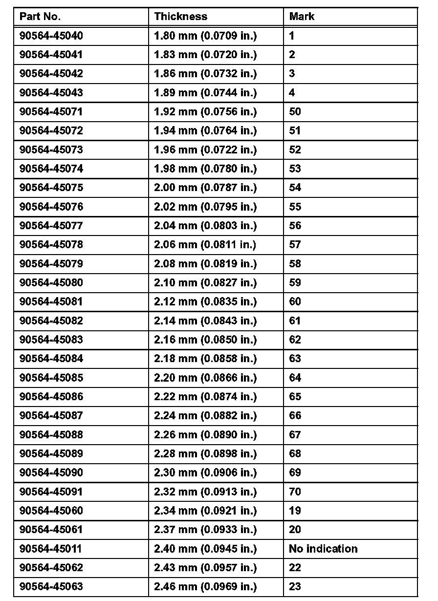 ^ As the shim thickness is increased 0.02 mm (0.0008 inch), the preload increases approximately 0.23 Nm (2.4 kgf-cm, 2.04 inch lbs.) accordingly.
