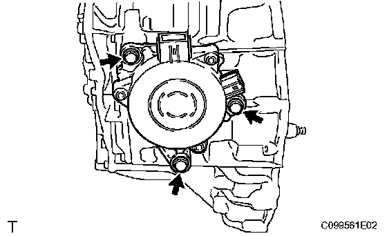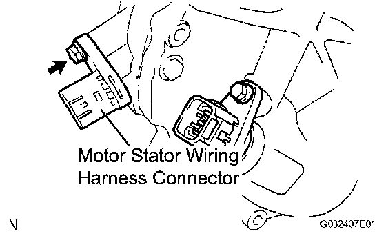 a. Apply ATF WS to the O-ring and install the motor stator wiring harness connectors (black) with the bolt.