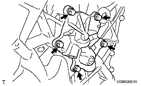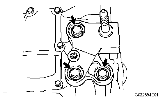 a. Apply adhesive to the first 2 or 3 threads of the 3 bolts and install the engine mounting bracket.