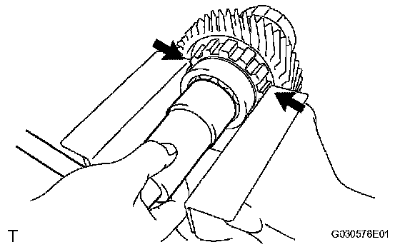 HINT: Set the drive pinion in a vise as shown in the illustration.