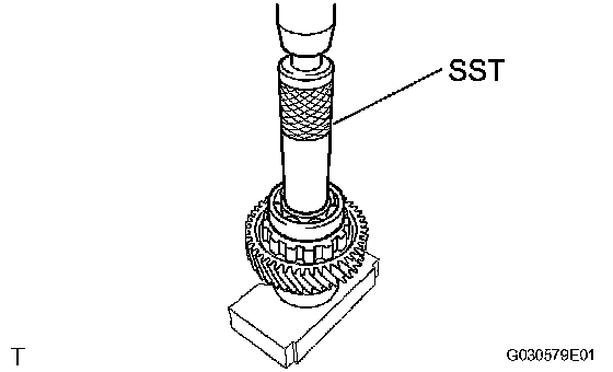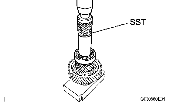 d. Using SST and a press, press out the bearing from the differential drive pinion.
