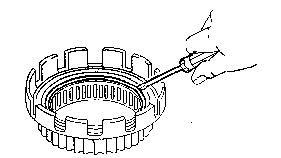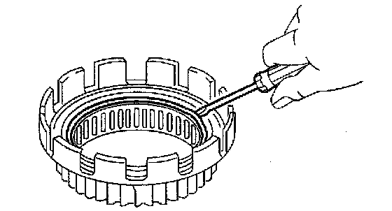 c. Using a thin screwdriver, install the snap ring to the transmission drive sprocket.
