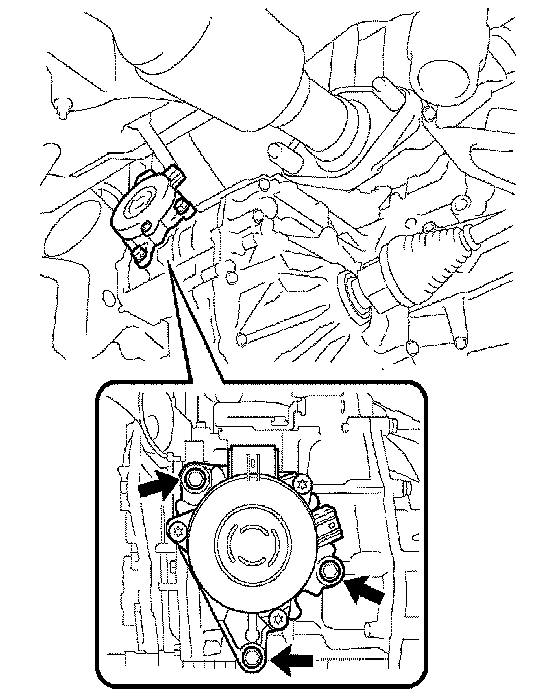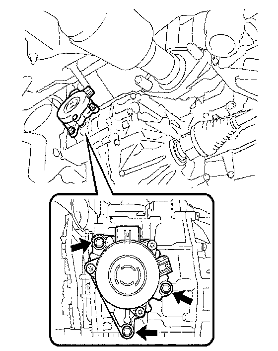 c. Remove the 3 bolts and shift control actuator from the hybrid vehicle transaxle.