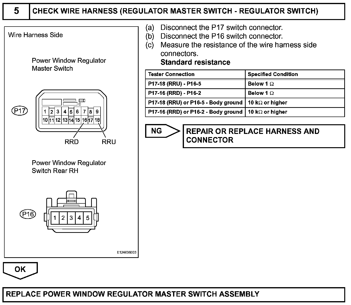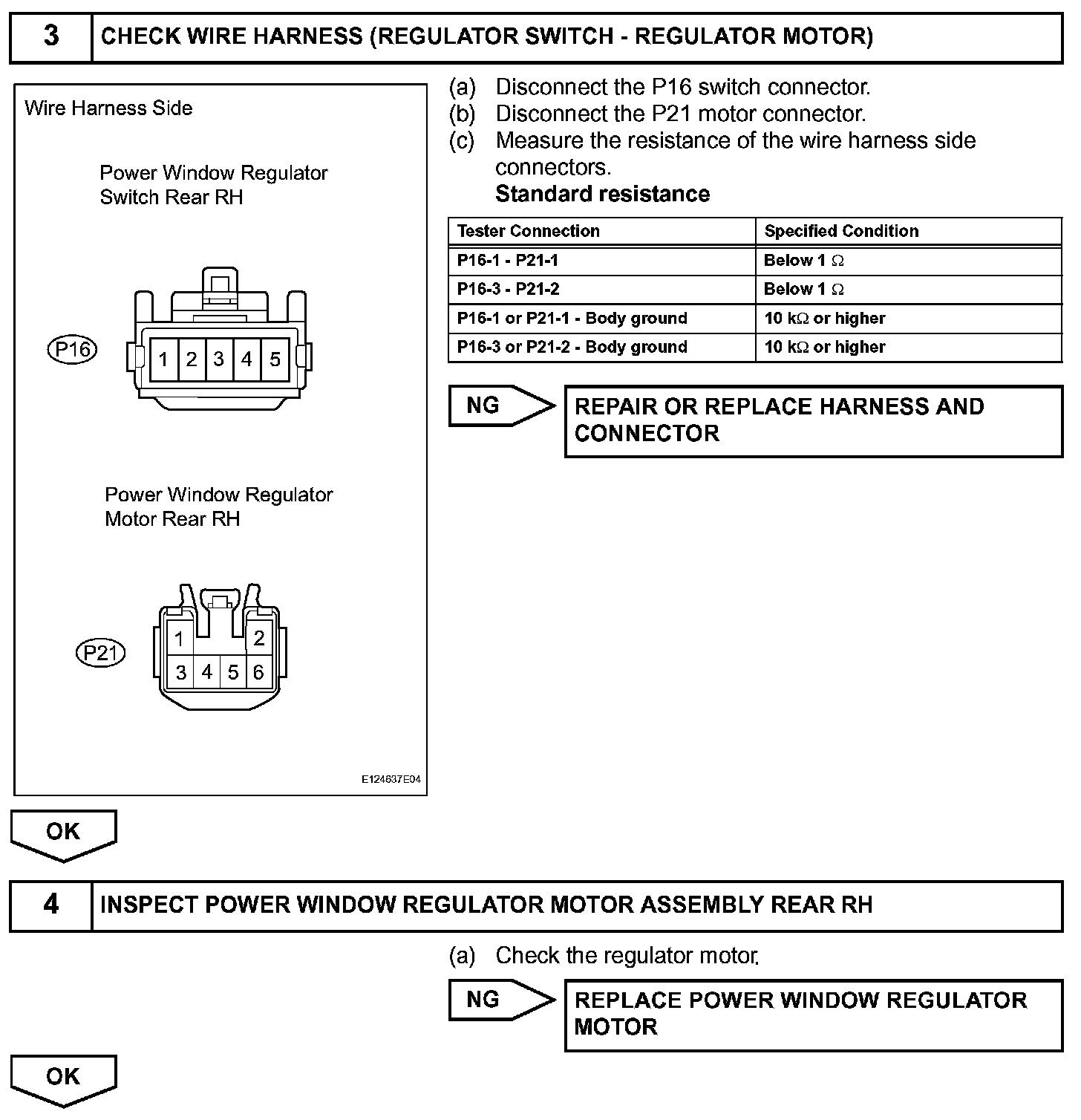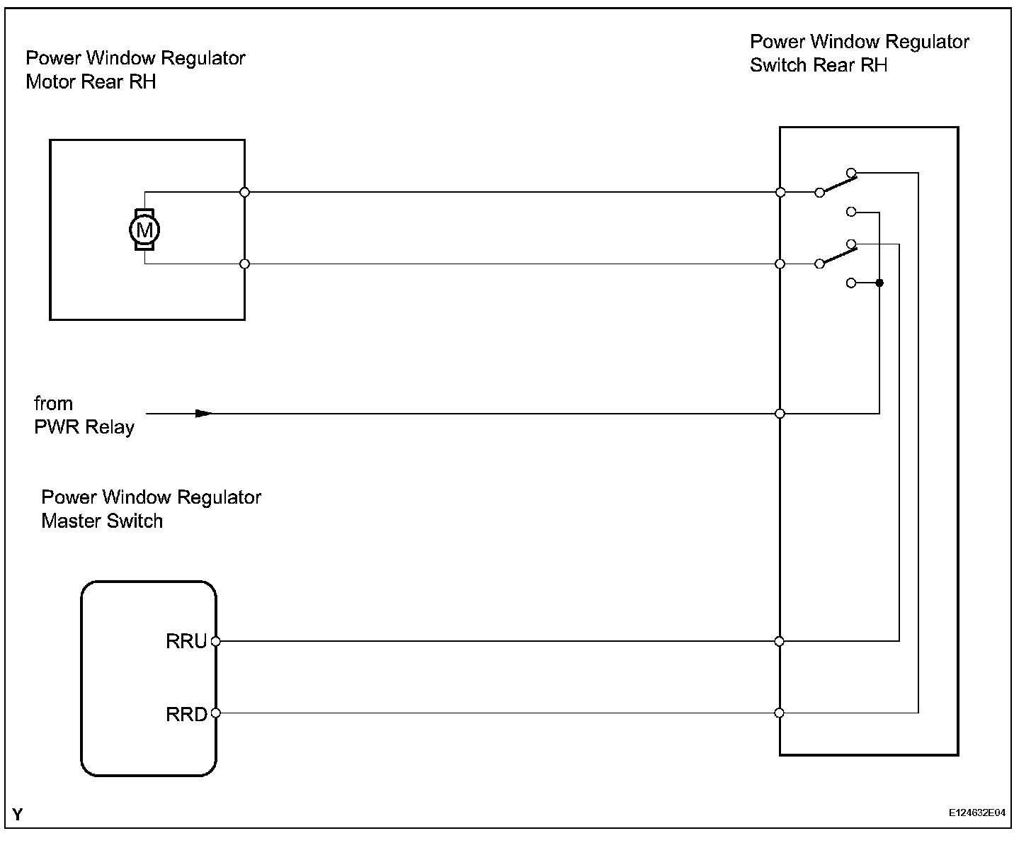 If the rear RH side manual UP / DOWN function does not operate, a malfunction may be present in the power window regulator motor, power window regulator switch, power window regulator master switch or wire harness.