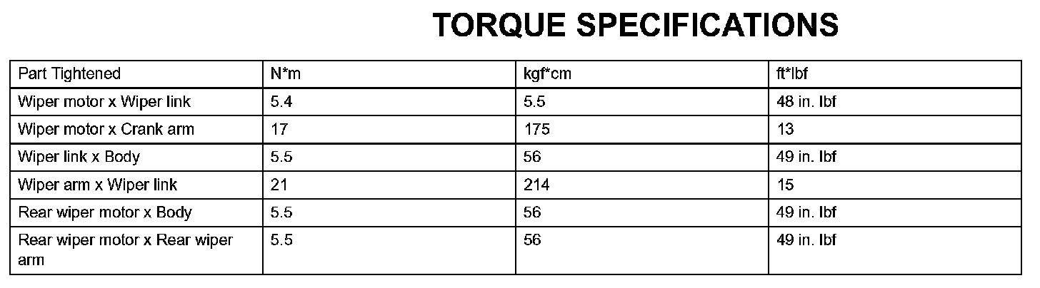 Wiper And Washer - Torque Specifications:
