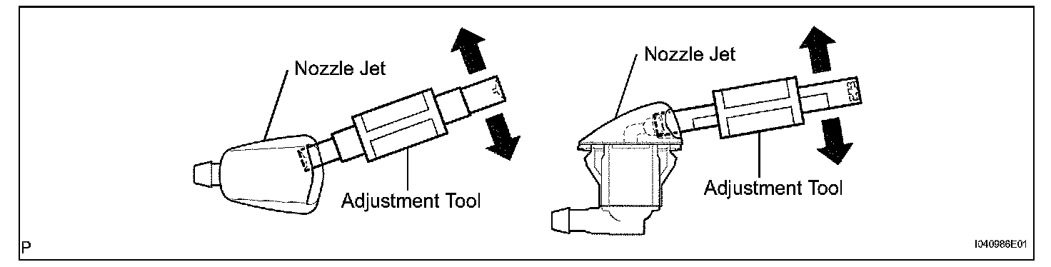 a. Using a TOYOTA 4 Way Nozzle Adjustment Tool, insert the bumpy part of the adjustment tool into the bumpy part of the nozzle jet and make the adjustment.