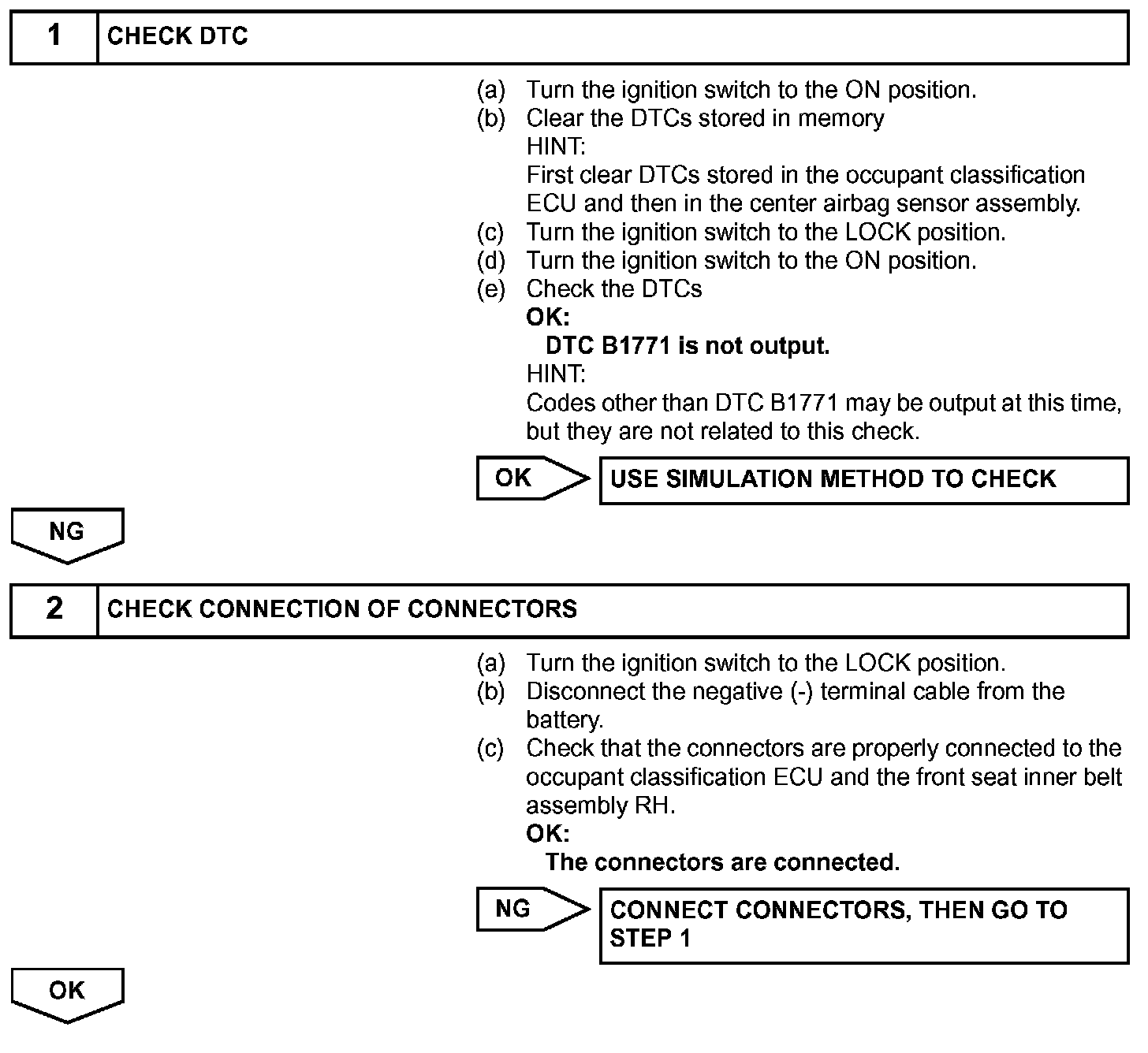 Troubleshoot DTC B1771 first when the DTC B1771 and B1795 are output simultaneously.