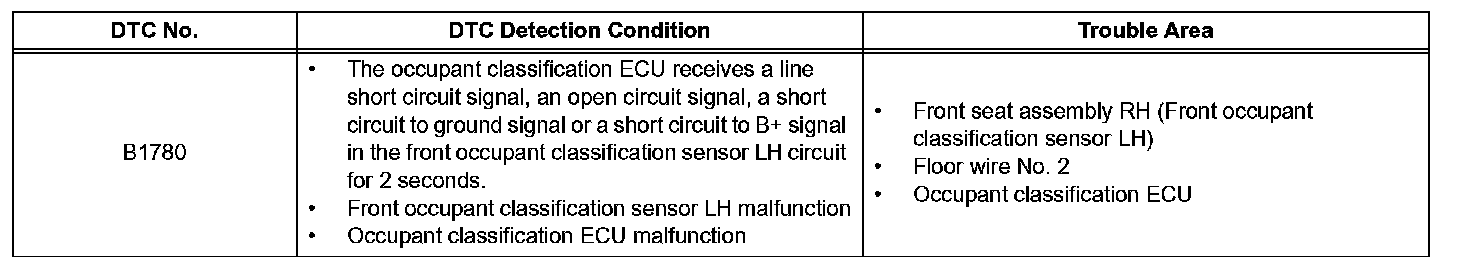 DTC B1780 Front Occupant Classification Sensor LH Circuit MalfunctionDESCRIPTION