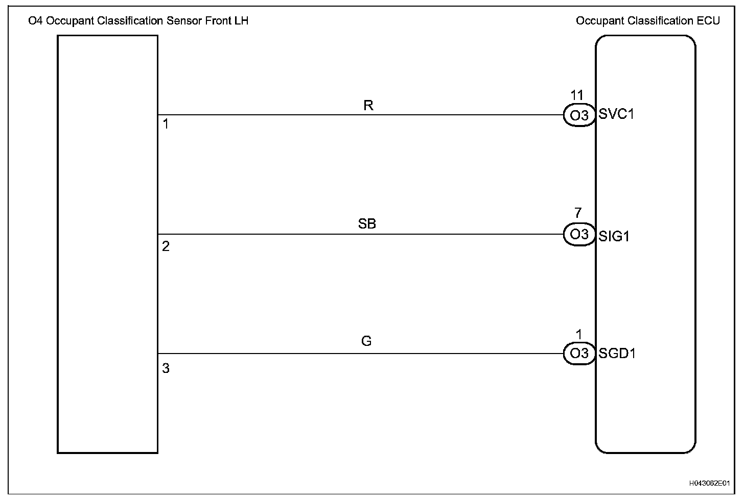The front occupant classification sensor LH circuit consists of the occupant classification ECU and the front occupant classification sensor LH.