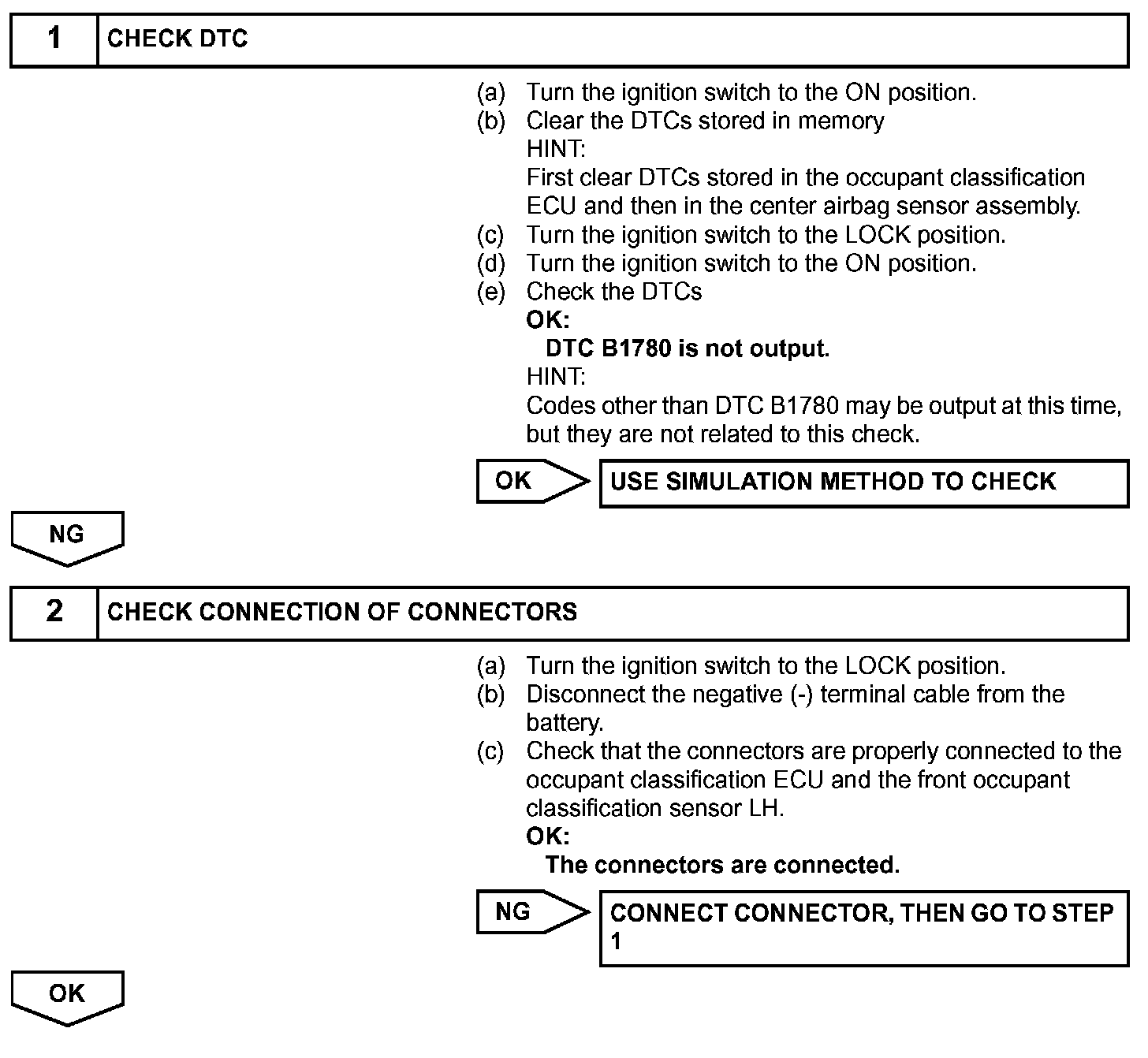 DTC B1780 is recorded when a malfunction is detected in the front occupant classification sensor LH circuit.