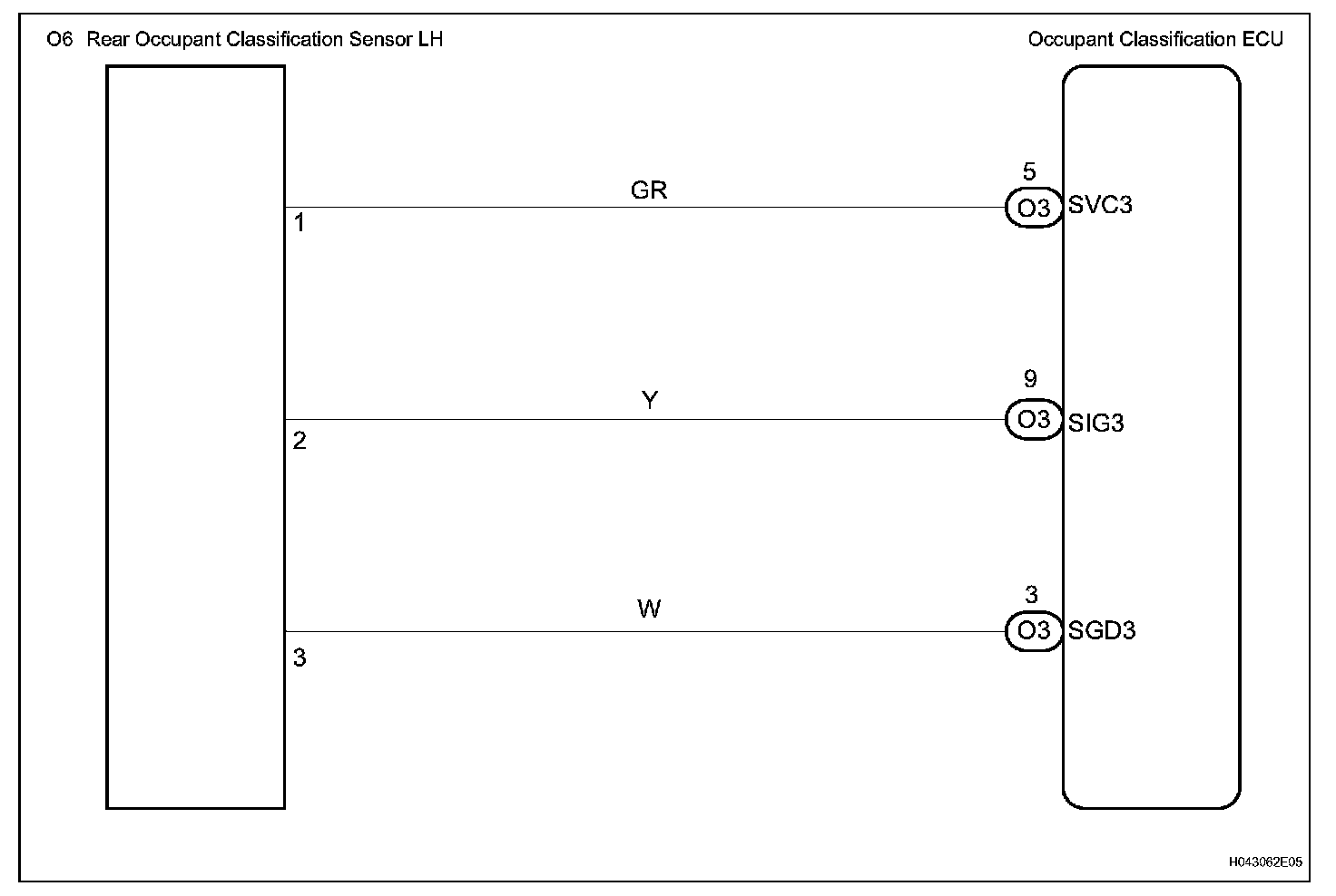The rear occupant classification sensor LH circuit consists of the occupant classification ECU and the rear occupant classification sensor LH.