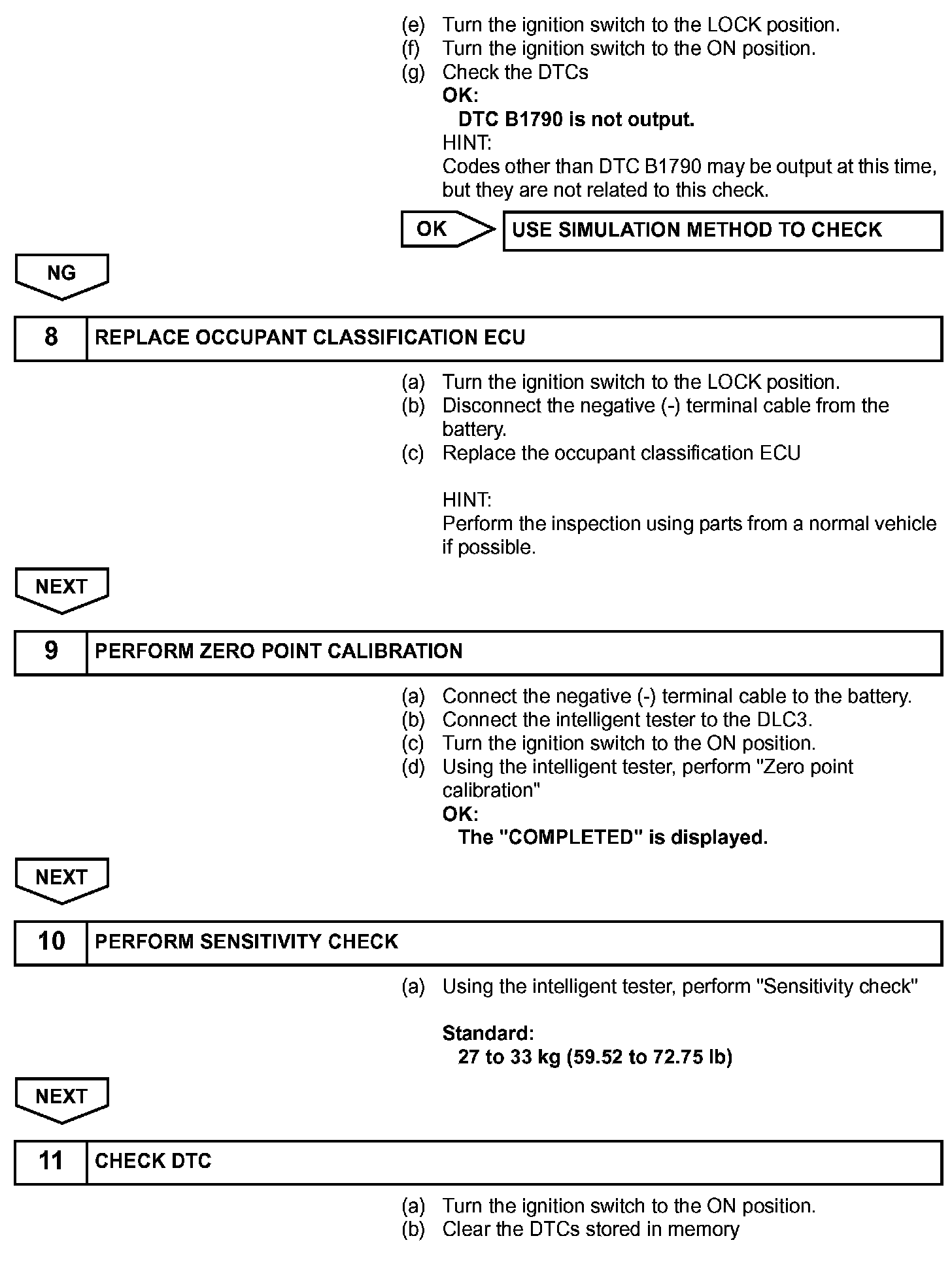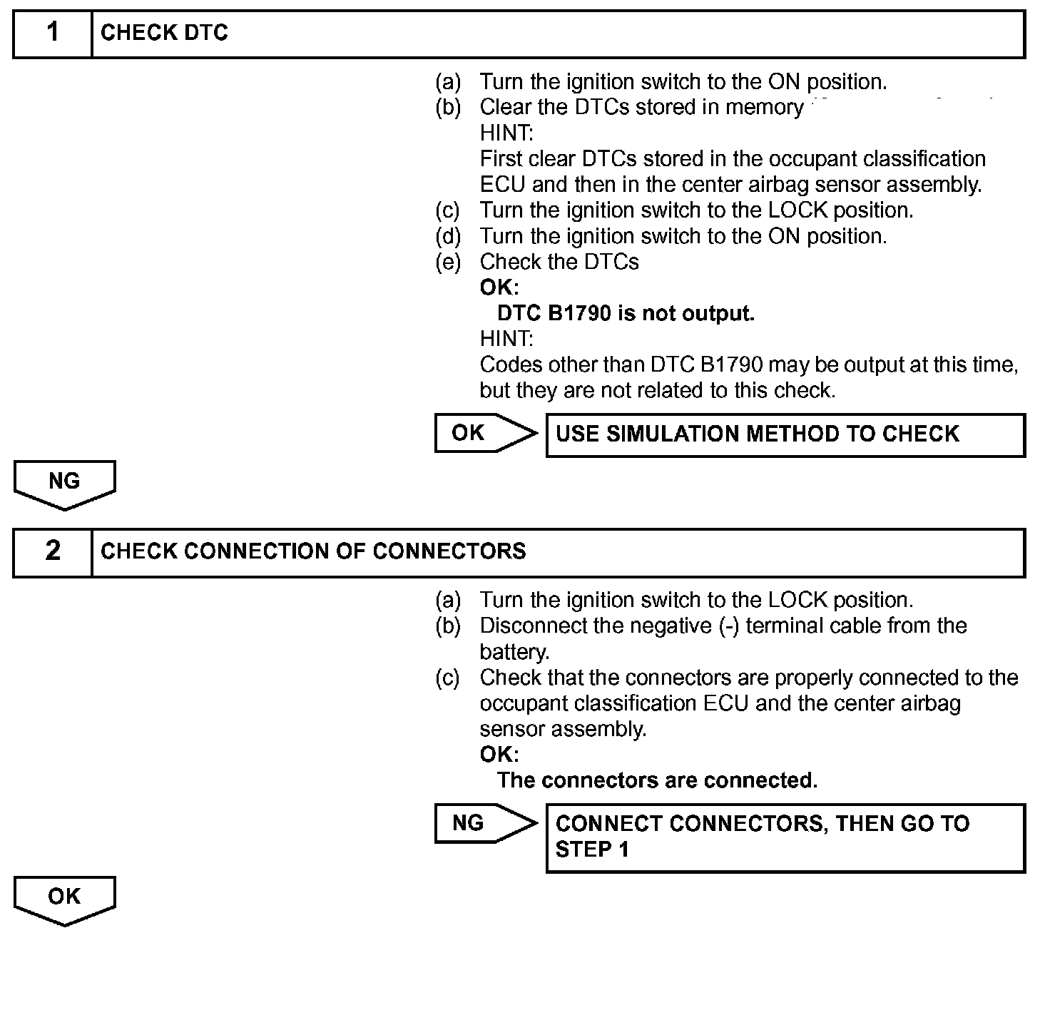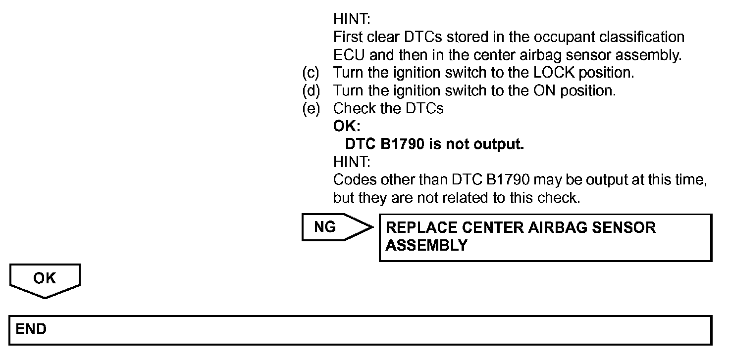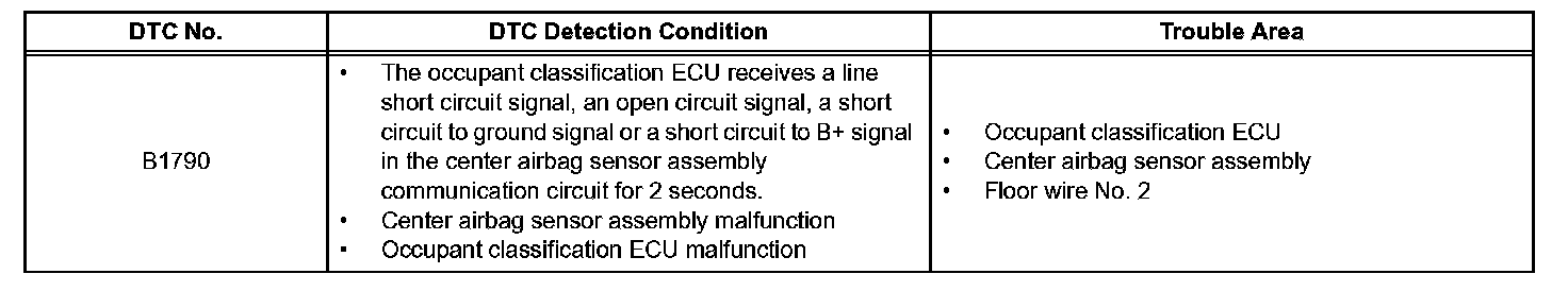 DTC B1790 is recorded when a malfunction is detected in the center airbag sensor assembly communication circuit.