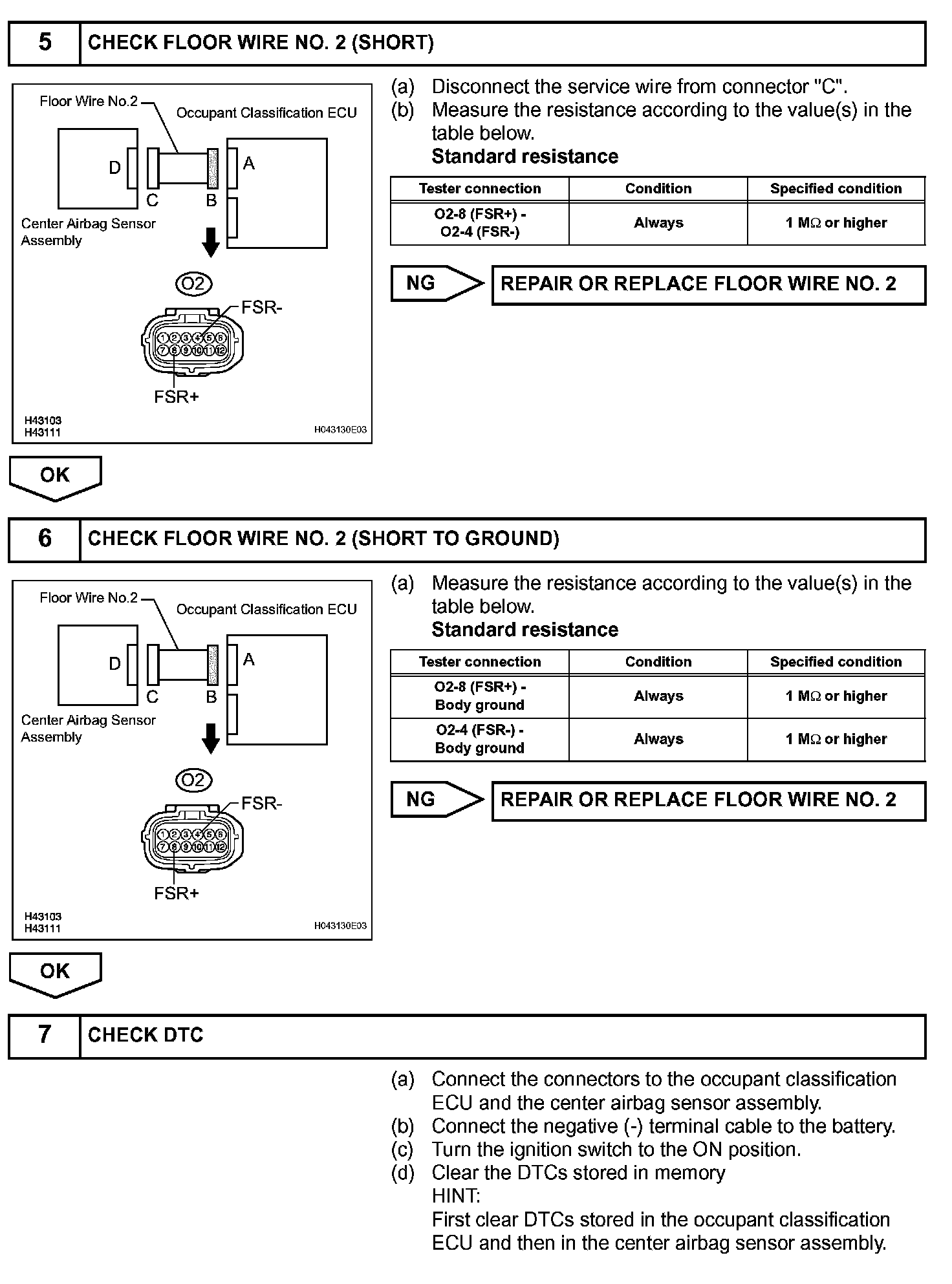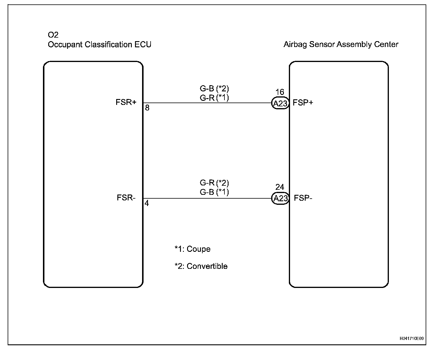 The center airbag sensor assembly communication circuit consists of the occupant classification ECU and the center airbag sensor assembly.