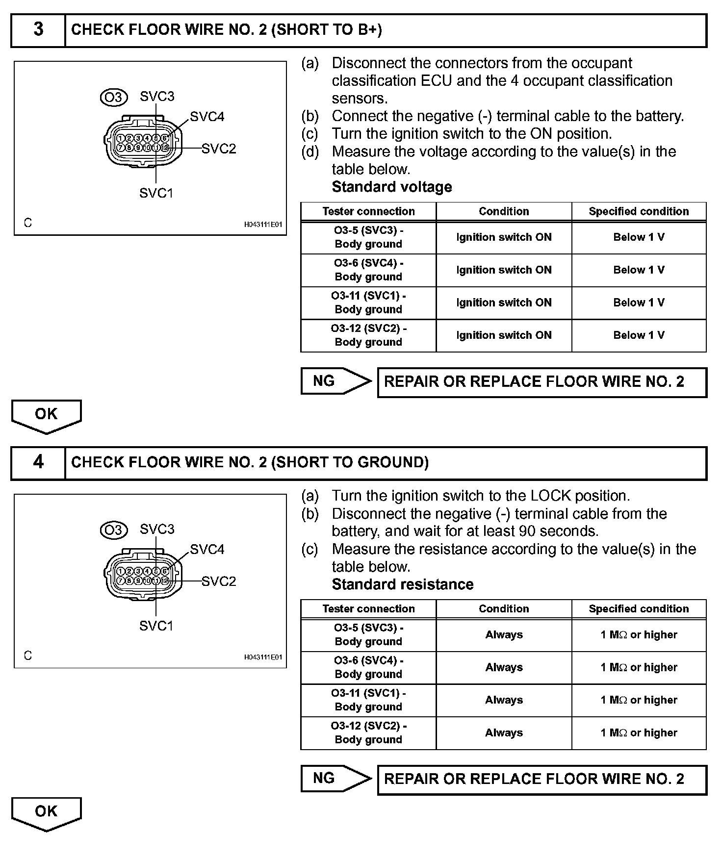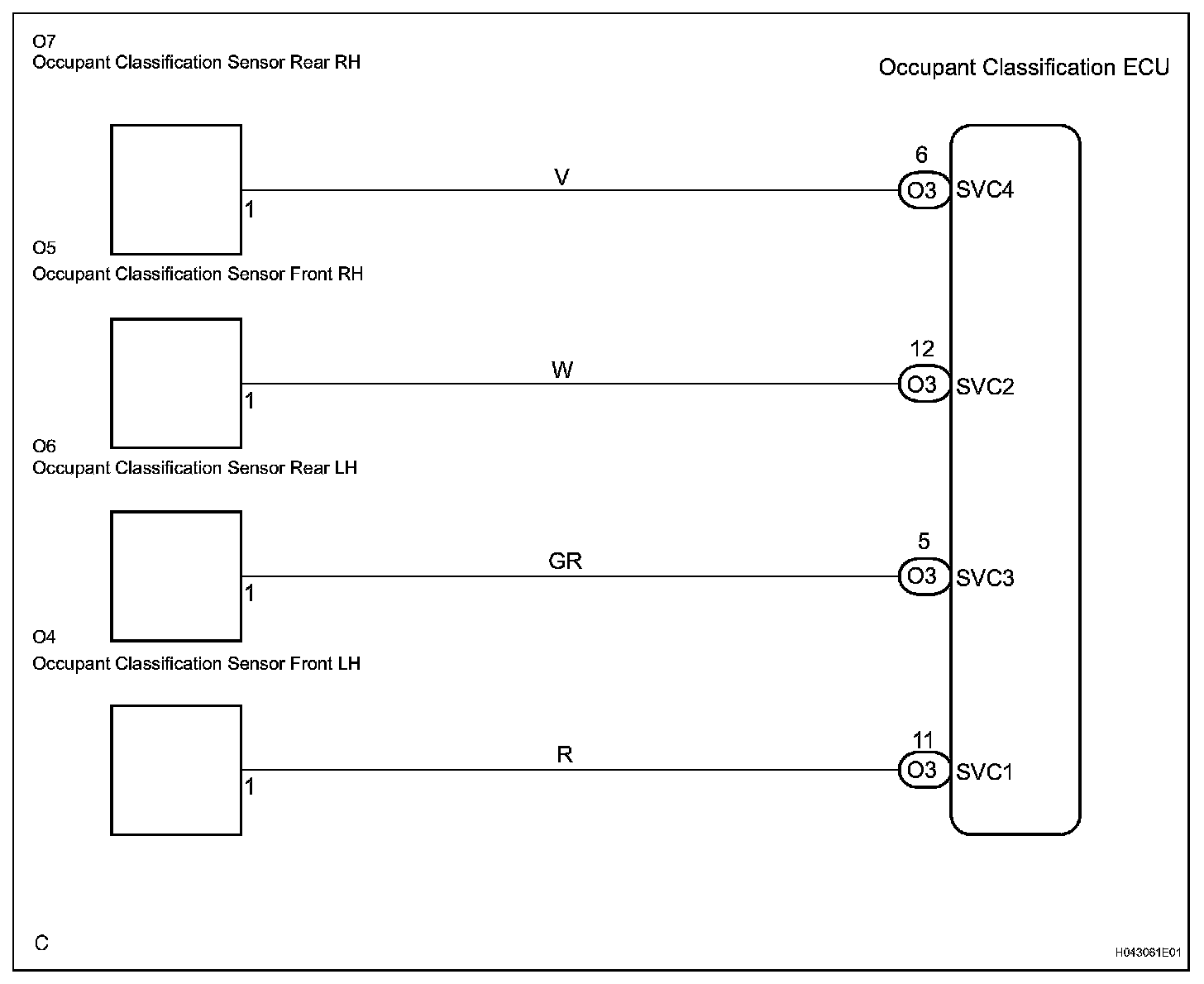 The occupant classification sensor power supply circuit consists of the occupant classification ECU and the occupant classification sensors.