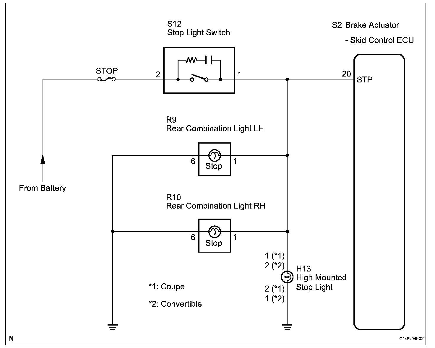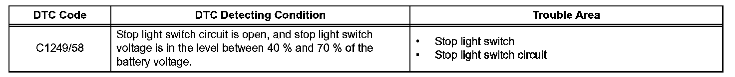DTC C1249/58 Stop Light Switch CircuitDESCRIPTION