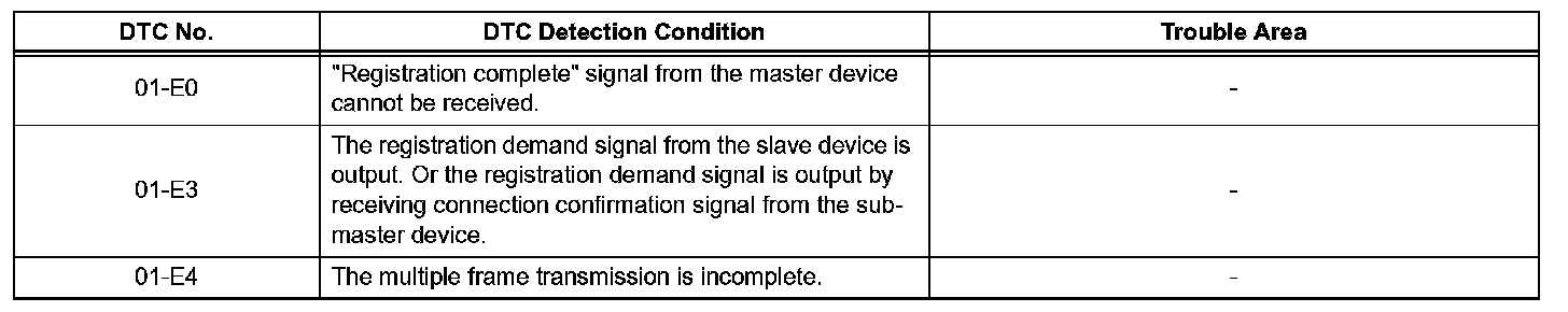 DTC 01-E0 Registration Complete Indication ErrorDTC 01-E3 Registration Demand Transmission