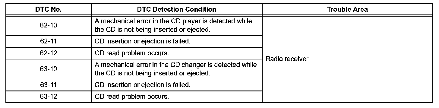 DTC 62-10 CD Player Mechanical ErrorDTC 62-11 CD Insertion and Ejection Error