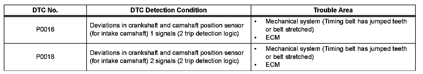 DTC P0016 Crankshaft Position - Camshaft Position Correlation (Bank 1 Sensor A)DTC P0018 Crankshaft Position - Camshaft Position Correlation (Bank 2 Sensor A)