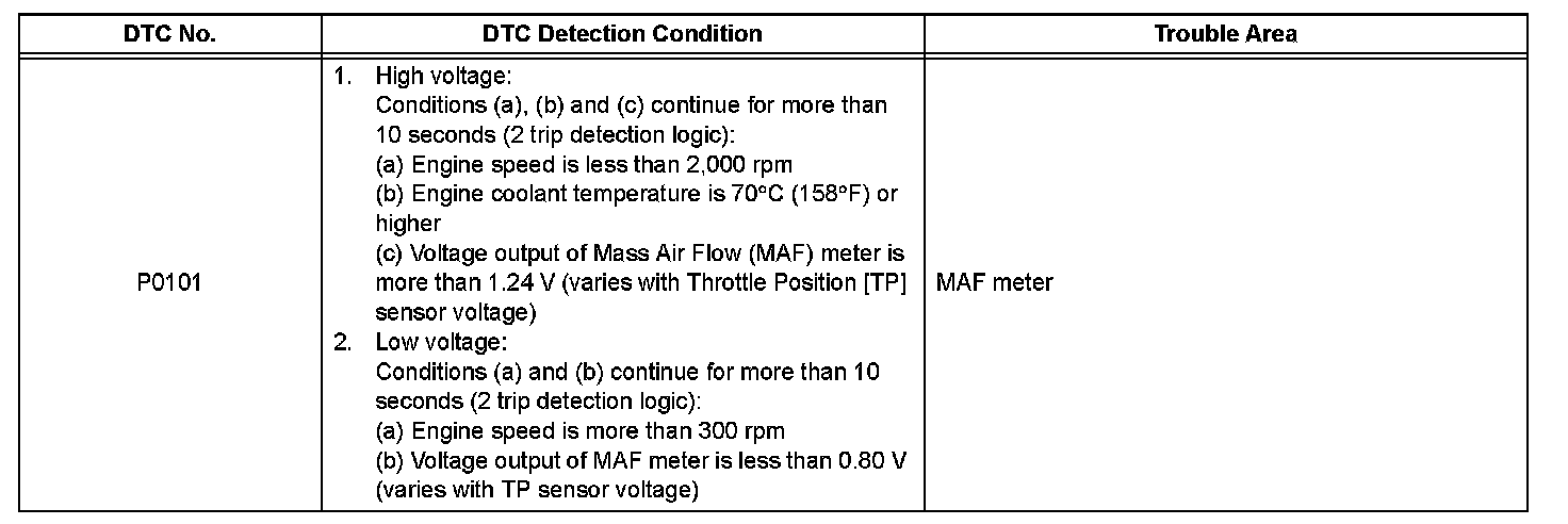 DTC P0101 Mass or Volume Air Flow Circuit Range / Performance ProblemDESCRIPTION
