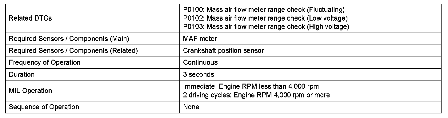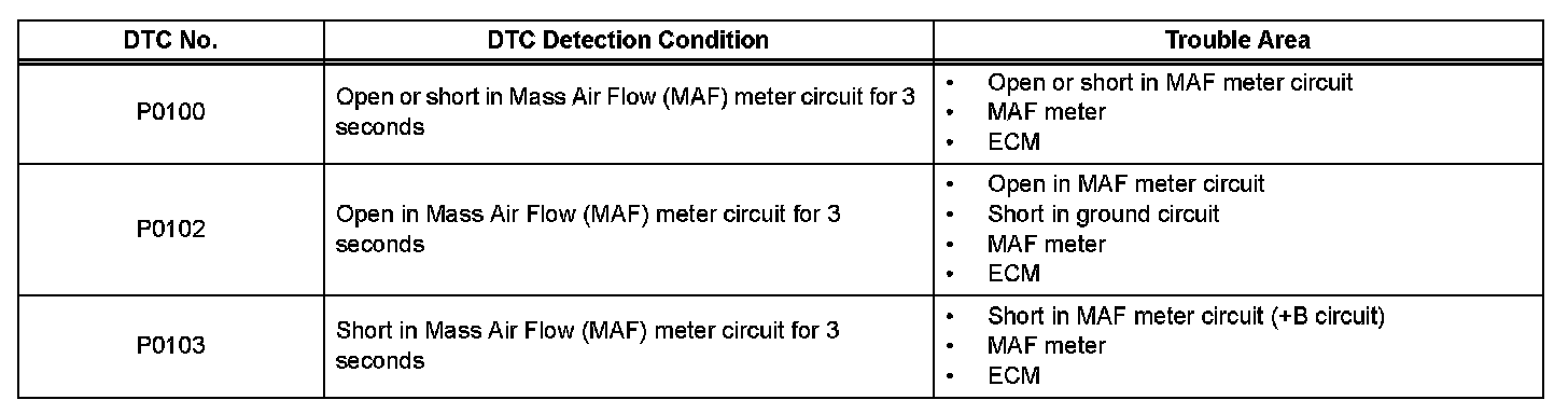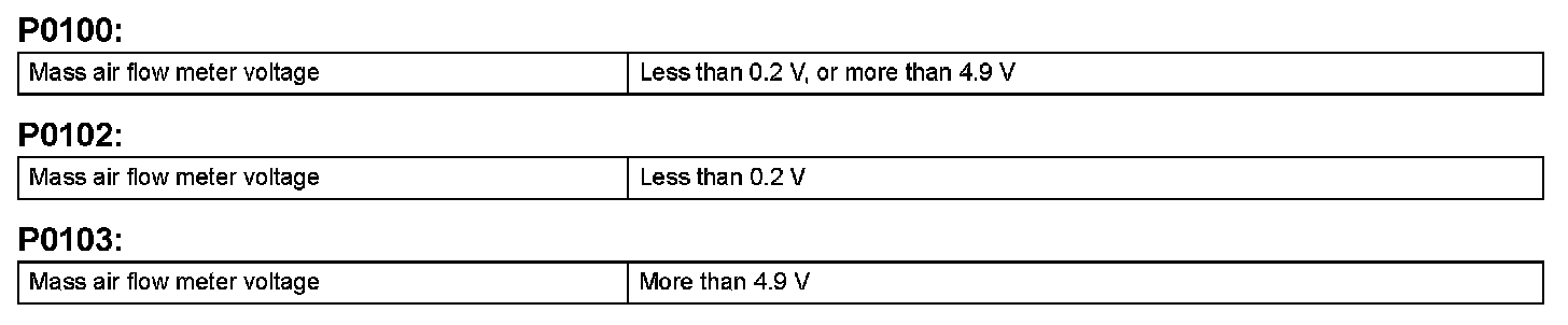 DTC P0100 Mass or Volume Air Flow CircuitDTC P0102 Mass or Volume Air Flow Circuit Low Input