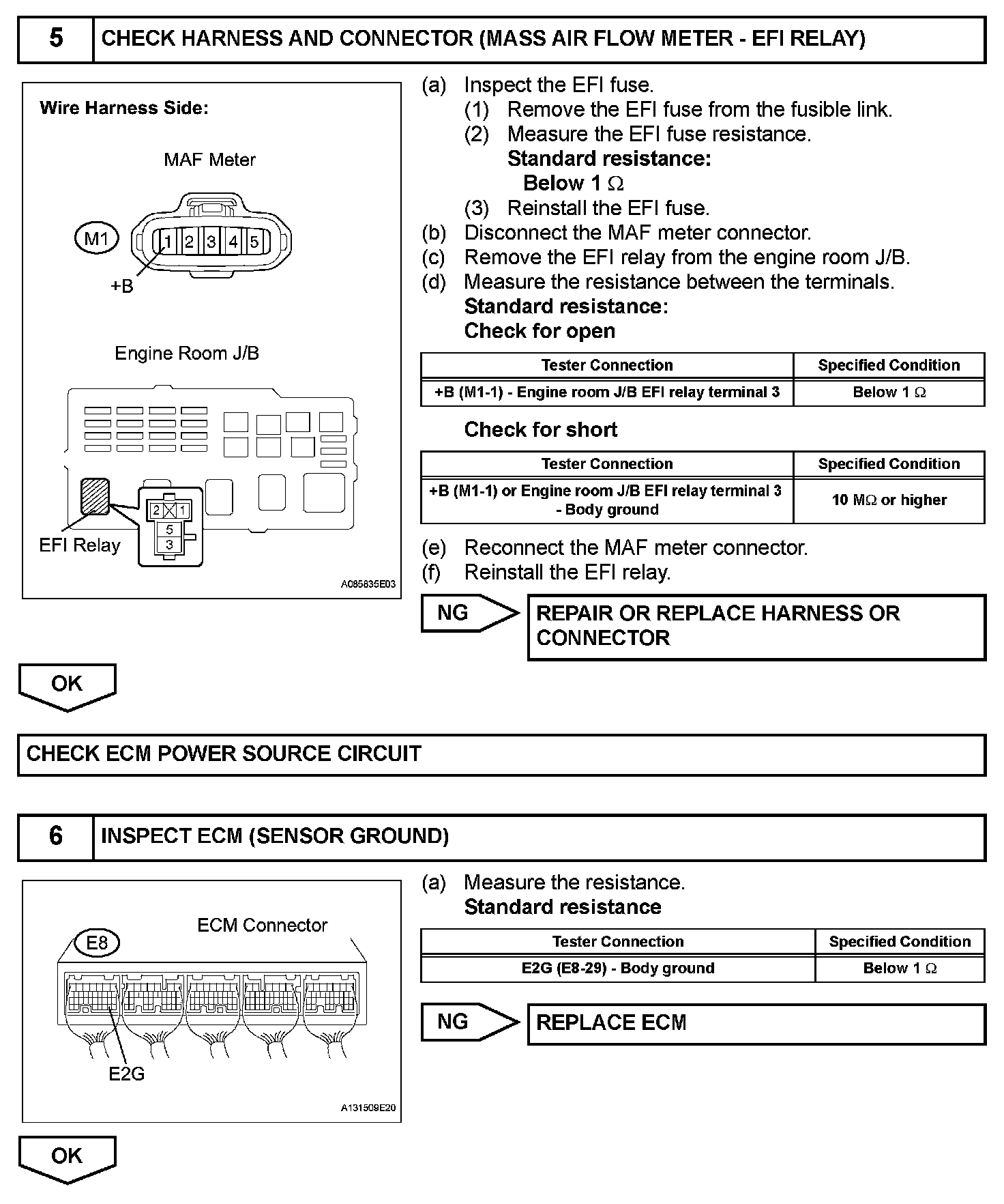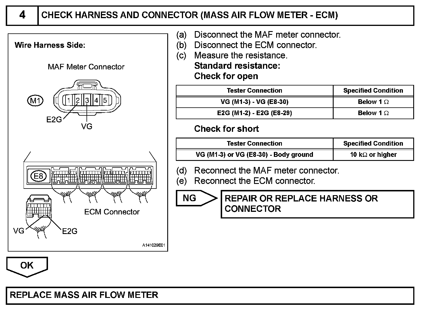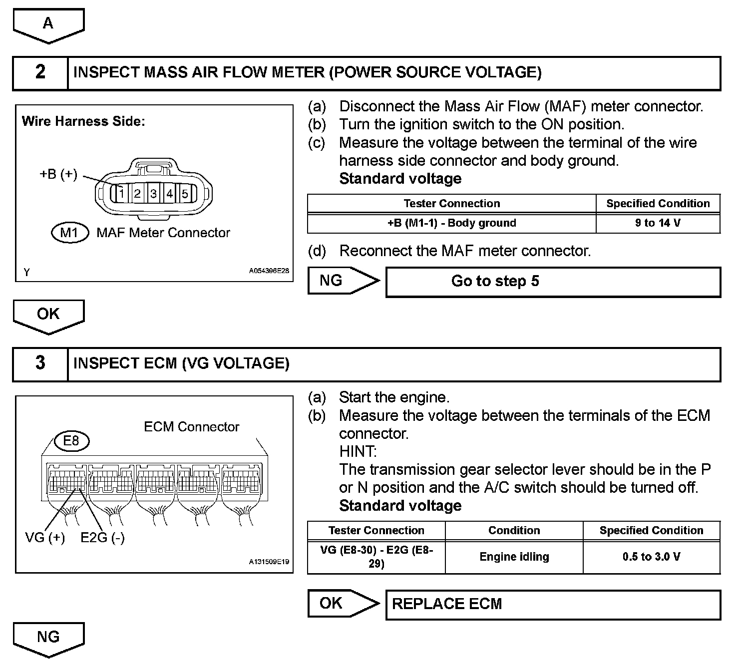 If there is a defect in the MAF meter or an open or short circuit, the voltage level deviates from the normal operating range. The ECM interprets this deviation as a malfunction in the MAF meter and sets a DTC.