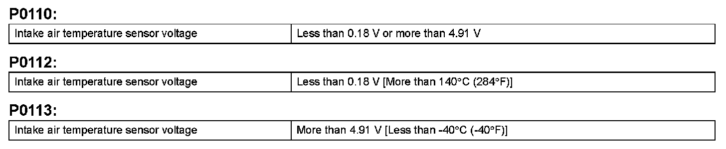 DTC P0110 Intake Air Temperature CircuitDTC P0112 Intake Air Temperature Circuit Low Input