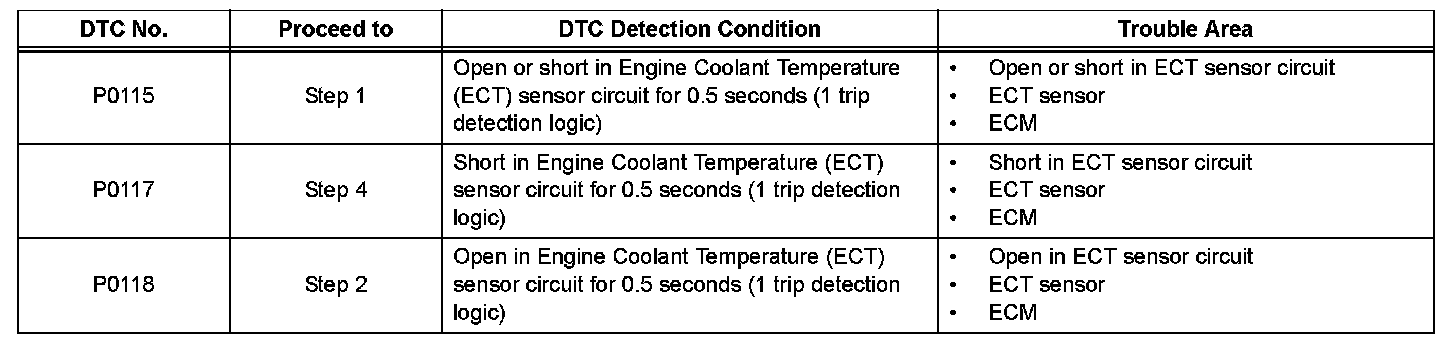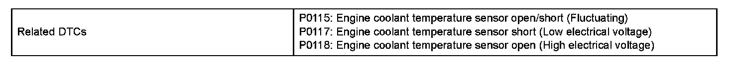 DTC P0115 Engine Coolant Temperature CircuitDTC P0117 Engine Coolant Temperature Circuit Low Input