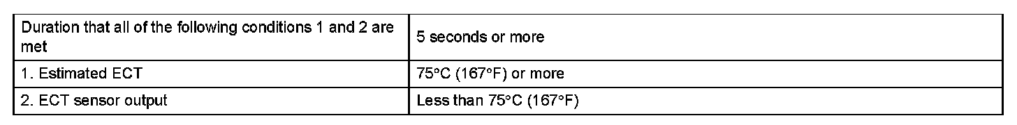 The ECM estimates the ECT based on the starting temperature, engine loads, and engine speeds. The ECM then compares the estimated temperature with the actual ECT When the estimated ECT reaches 75 °C (167 °F), the ECM checks the actual ECT If the actual ECT is less than 75 °C (167 °F), the ECM interprets this as a malfunction in the thermostat or the engine cooling system and sets the DTC.