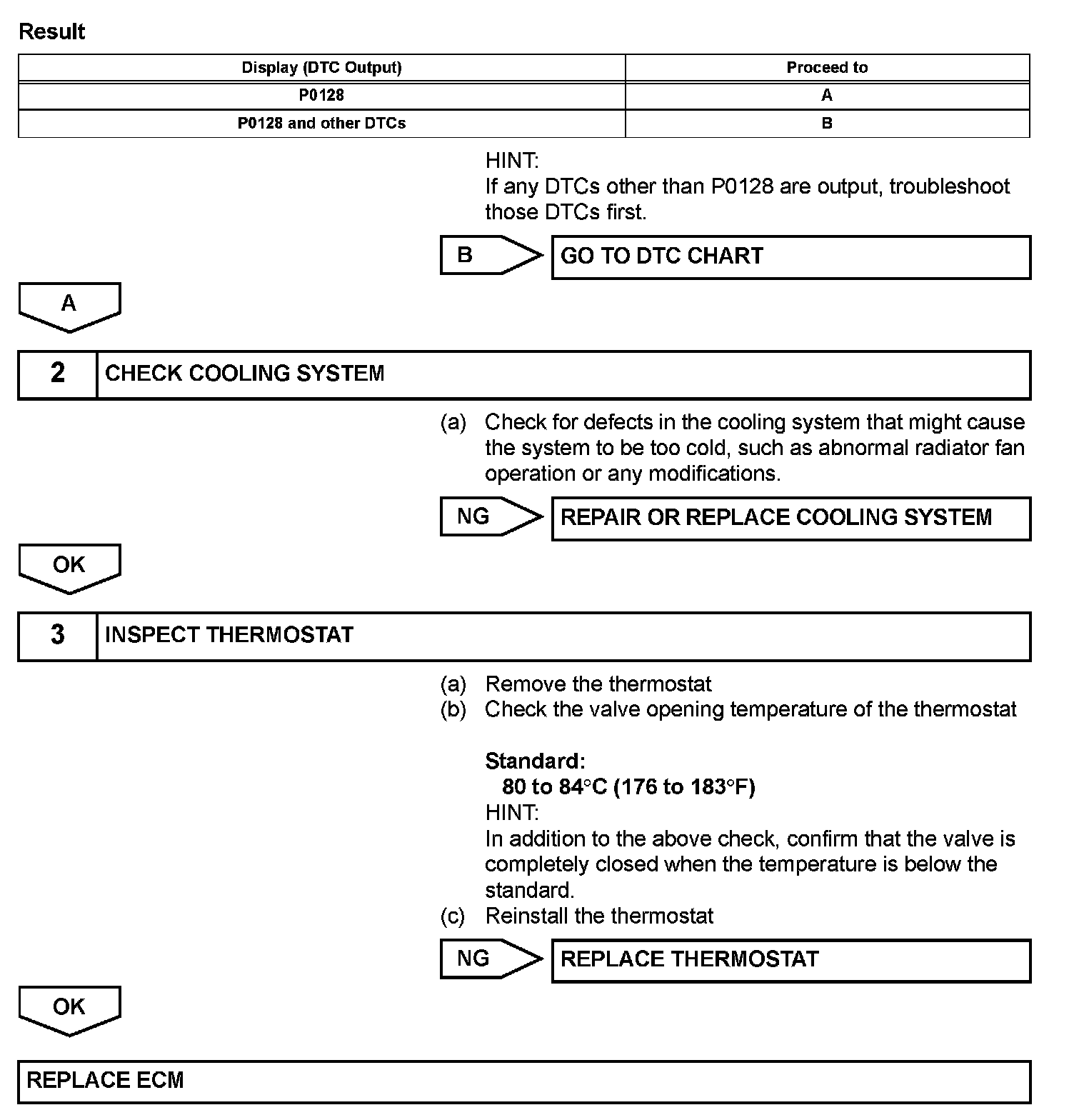 DTC P0128 Coolant Thermostat (Coolant Temperature Below Thermostat Regulating Temperature)HINT: This DTC relates to the thermostat.