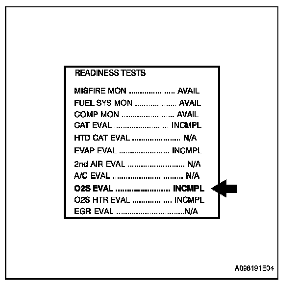 HINT: If O2S EVAL does not change to COMPL, and any pending DTCs fail to set, extend the driving time.