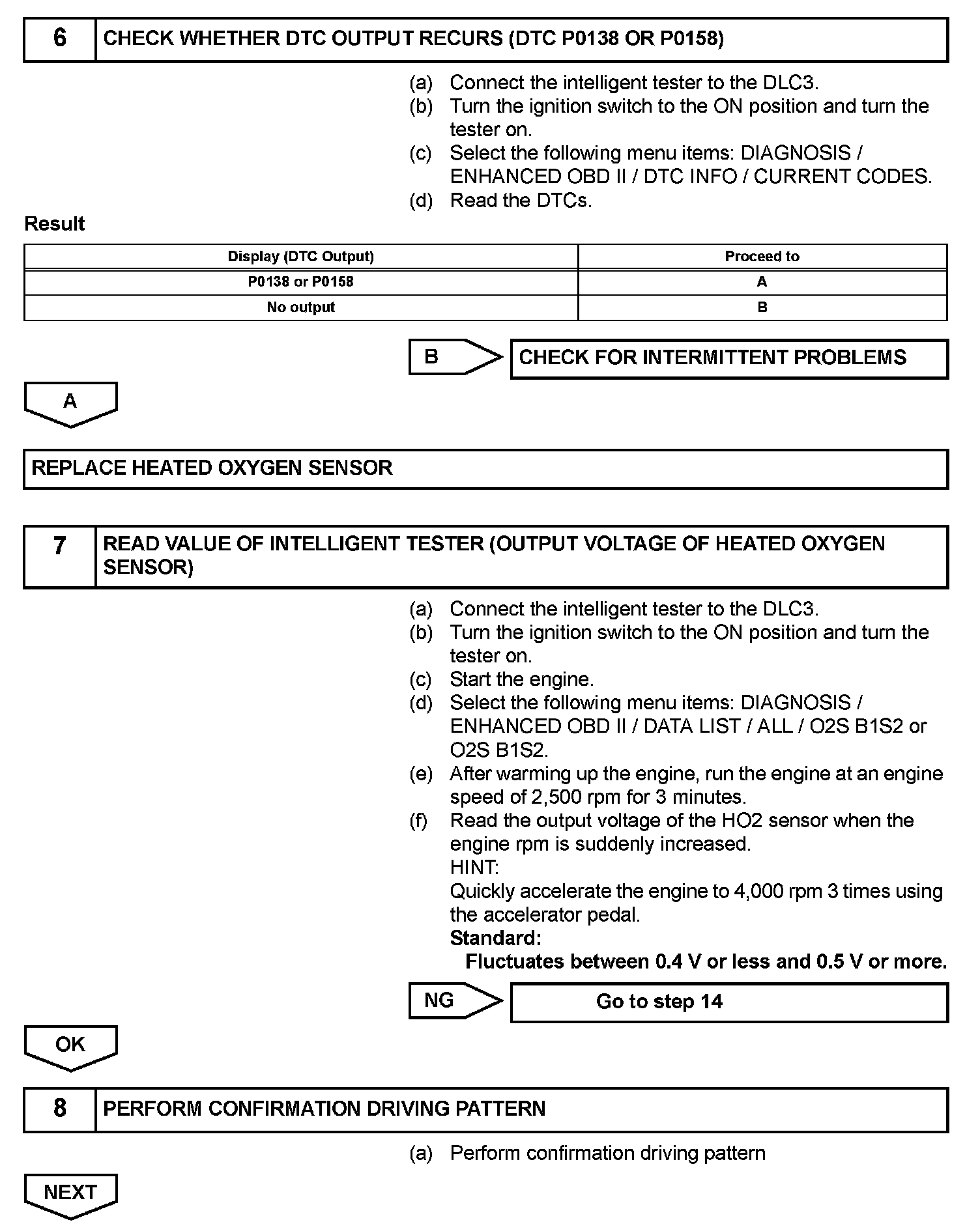 - This confirmation driving pattern is used in steps 5, 8 and 11 of the following diagnostic troubleshooting procedure when using the intelligent tester.