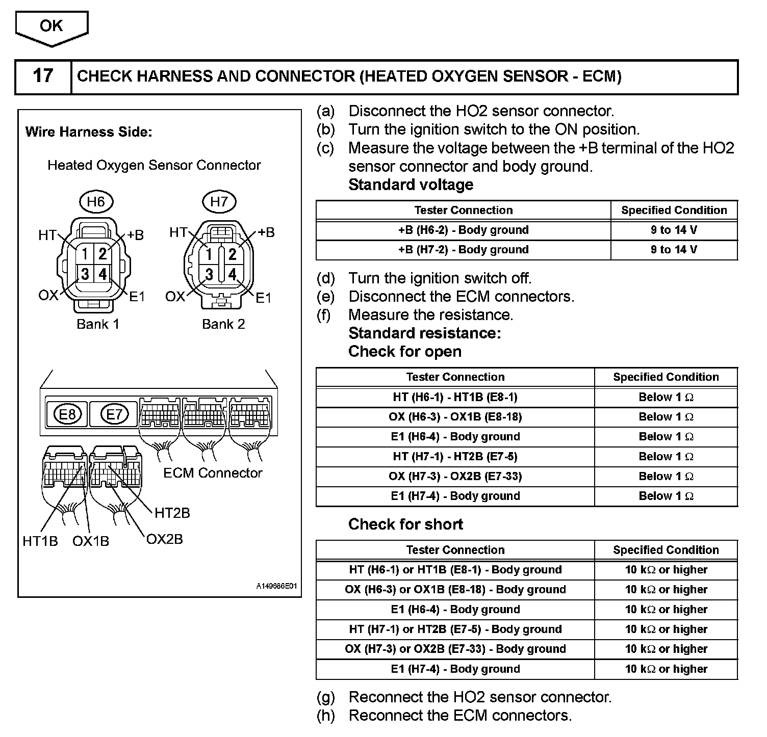 - If the OX2 B wire from the ECM connector is short-circuited to the +B wire, DTC P0158 will be set.