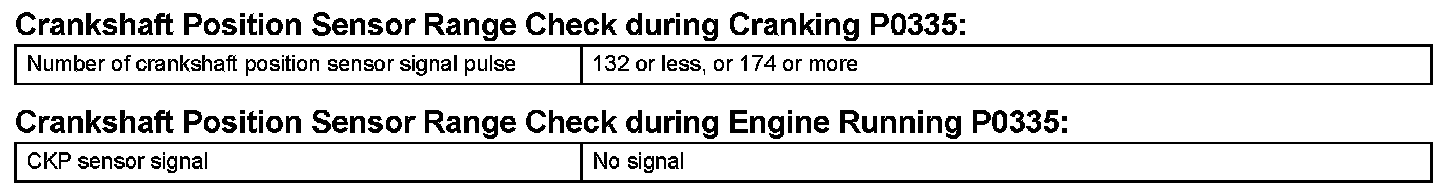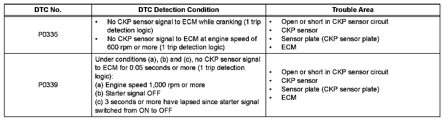 DTC P0335 Crankshaft Position Sensor "A" CircuitDTC P0339 Crankshaft Position Sensor "A" Circuit Intermittent