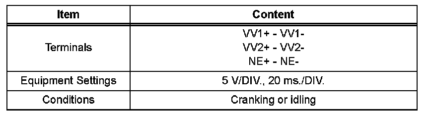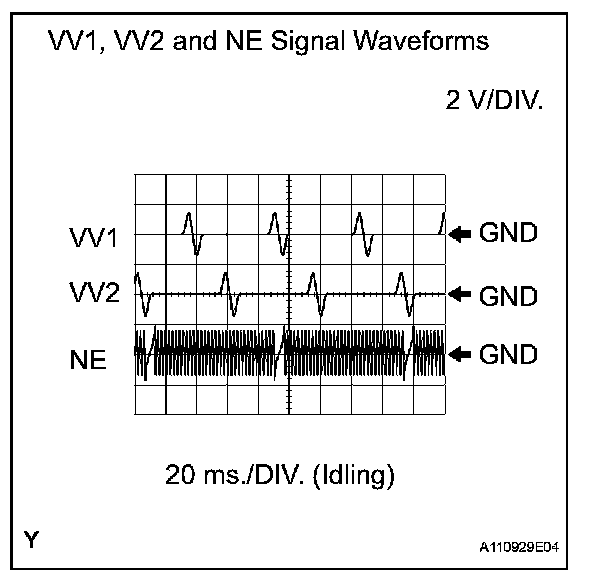 - VV1+ and VV2+ stand for the VVT sensor signal, and NE+ stands for the CKP sensor signal.