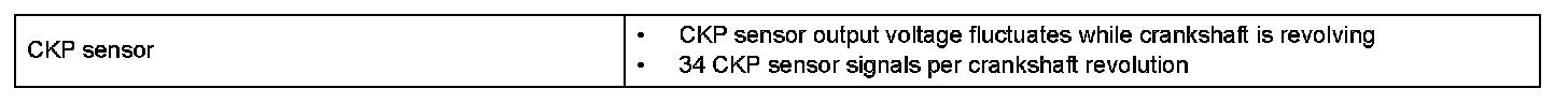 The Crankshaft Position (CKP) sensor system consists of a CKP sensor plate and a pickup coil. The sensor plate has 34 teeth and is installed on the crankshaft. The pickup coil is made of an iron core and a magnet.