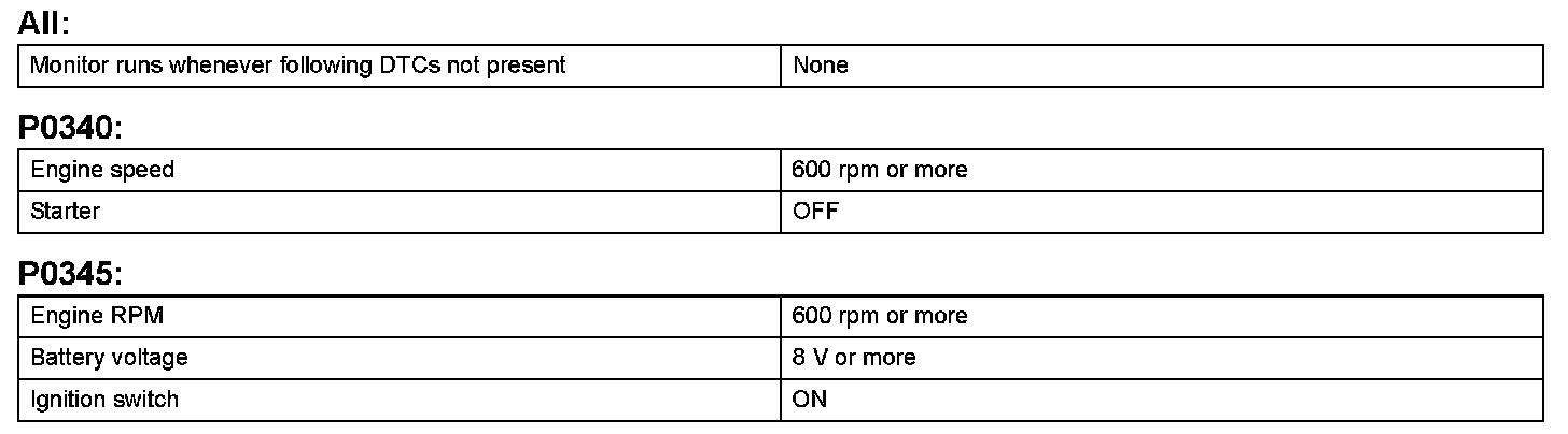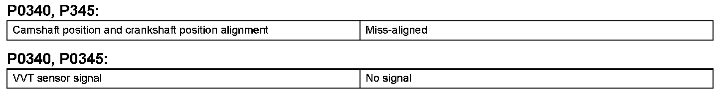 DTC P0340 Camshaft Position Sensor Circuit MalfunctionDTC P0345 Camshaft Position Sensor "A" Circuit (Bank 2)