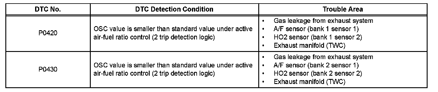 DTC P0420 Catalyst System Efficiency Below Threshold (Bank 1)DTC P0430 Catalyst System Efficiency Below Threshold (Bank 2)