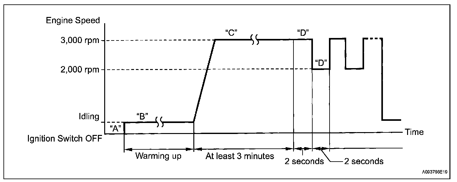 3. Run the engine at an engine speed of between 2,500 rpm and 3,000 rpm for at least 3 minutes (Procedure "C").
