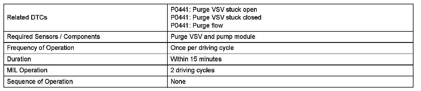 DTC P0441 Evaporative Emission Control System Incorrect Purge FlowMalfunction Detection Condition: