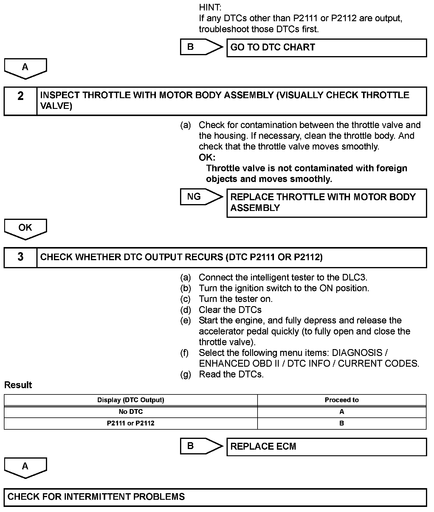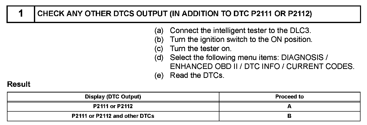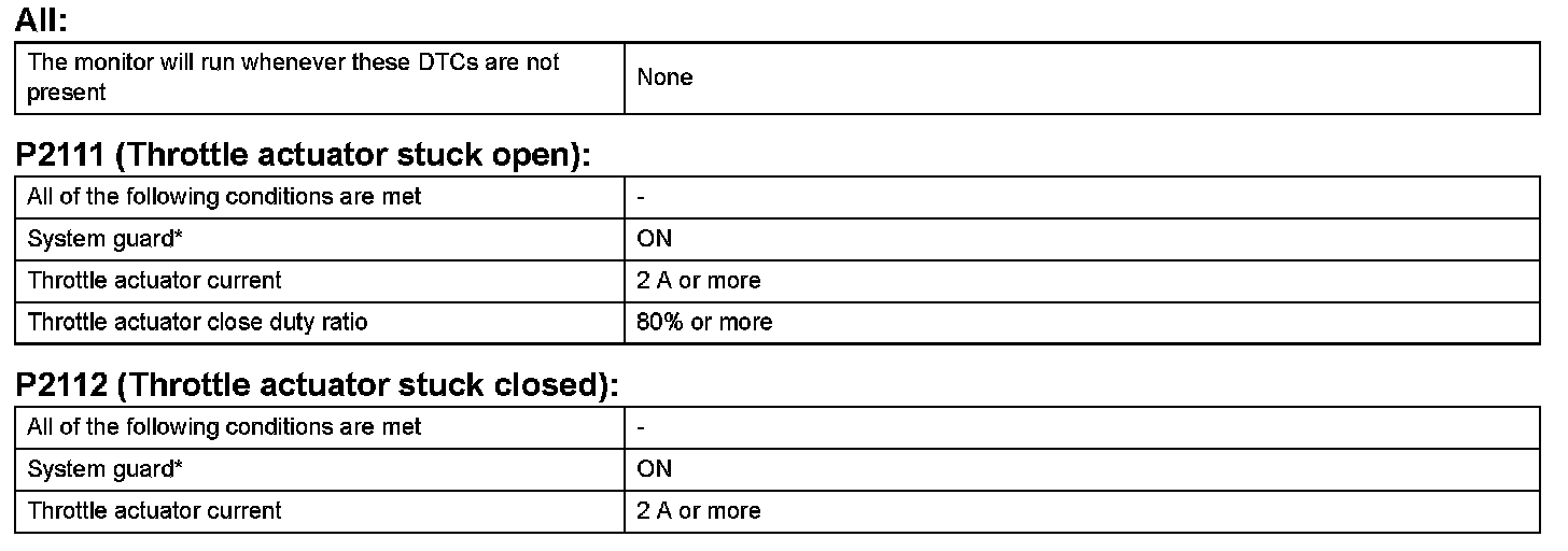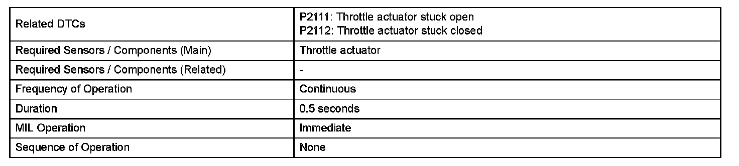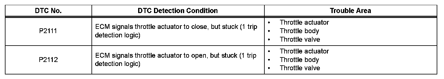 DTC P2111 Throttle Actuator Control System - Stuck OpenDTC P2112 Throttle Actuator Control System - Stuck Closed