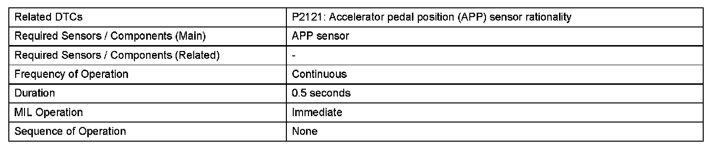 DTC P2121 Throttle / Pedal Position Sensor / Switch "D" Circuit Range / PerformanceDTC Detection Condition: