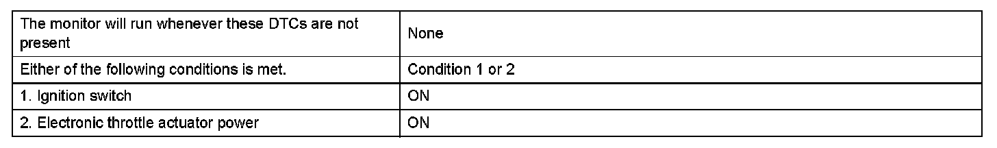The accelerator pedal position sensor has 2 (main and sub) sensor circuits. If a malfunction occurs in either of the sensor circuits, the ECM detects the abnormal signal voltage difference between the 2 sensor circuits and switches to limp mode. In limp mode, the functioning circuit is used to calculate the accelerator pedal opening angle to allow the vehicle to continue driving. If both circuits malfunction, the ECM regards the opening angle of the accelerator pedal as being fully closed. In this case, the throttle valve remains closed as if the engine is idling. If a pass condition is detected and then the ignition switch is turned off, the fail-safe operation stops and the system returns to a normal condition.