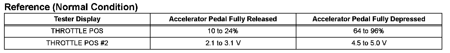 - THROTTLE POS denotes the VTA1 signal (expressed in percentages), and THROTTLE POS #2denotes the VTA2 signal (expressed in voltages). Reference (Normal Condition)