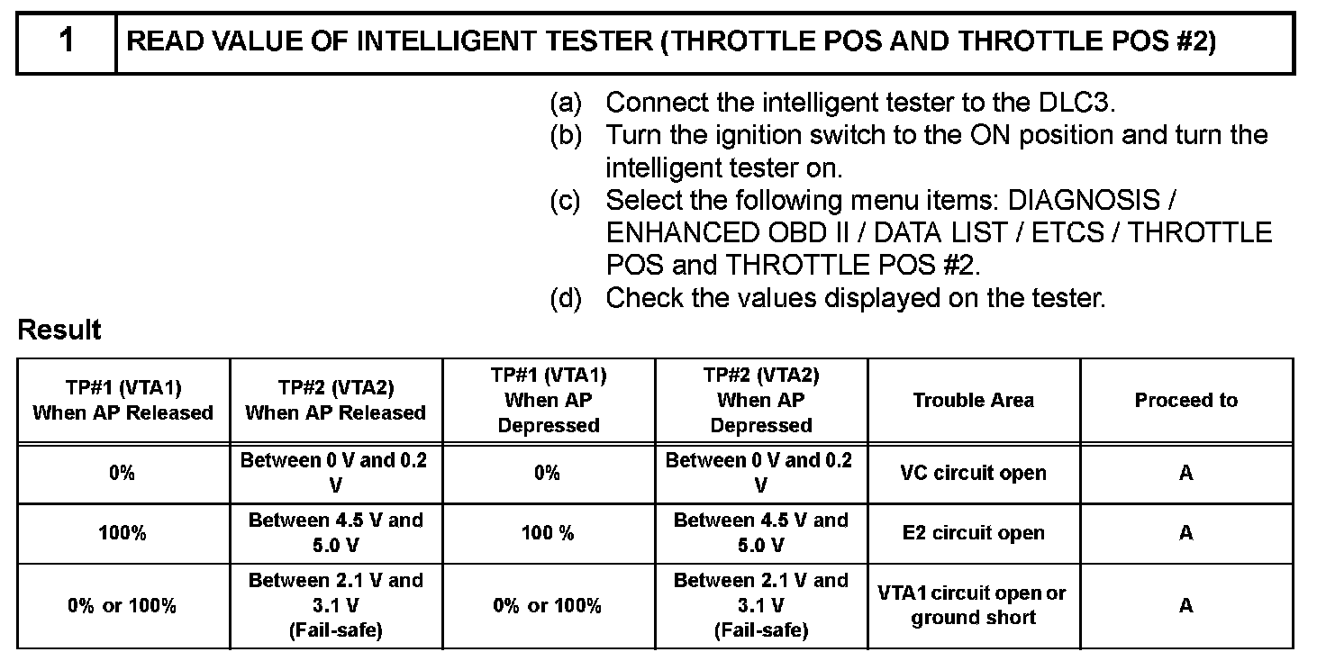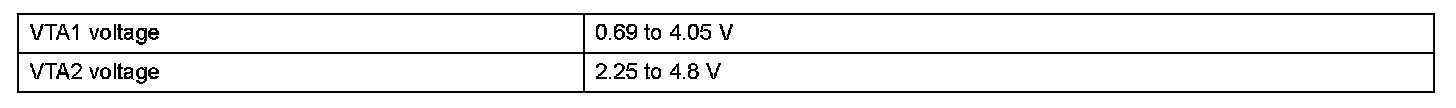 - VTA1 and VTA2 each have a specific voltage range. If VTA1 or VTA2 is outside the normal operating range, the ECM interprets this as a malfunction in the sensor, and sets a DTC.