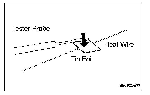 NOTE: When cleaning the glass, use a soft, dry cloth, and wipe the glass in the direction of the wire. Take care not to damage the wires. Do not use detergents or glass cleaners with abrasive ingredients. When measuring voltage, wind a piece of tin foil around the top of the negative probe and press the foil against the wire with your finger, as shown in the illustration.