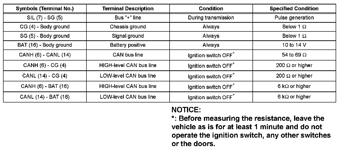 If the result is not as specified, the DLC3 may have a malfunction. Repair or replace the harness and connector.