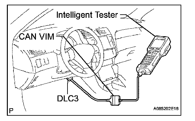 b. Connect the cable of the intelligent tester (with CAN VIM) to the DLC3, turn the ignition switch to the ON position and attempt to use the intelligent tester. If the screen displays a communication error message, a problem exists in the vehicle side of the tester side.