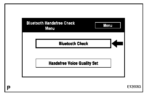 a. Select ""Bluetooth" Check" from the "Bluetooth" Handsfree Check Menu" screen.