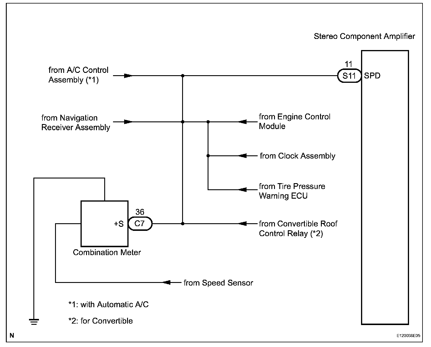 Vehicle Speed Signal Circuit Between Stereo Component Amplifier and Combination Meter