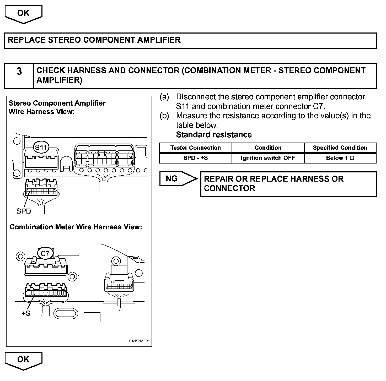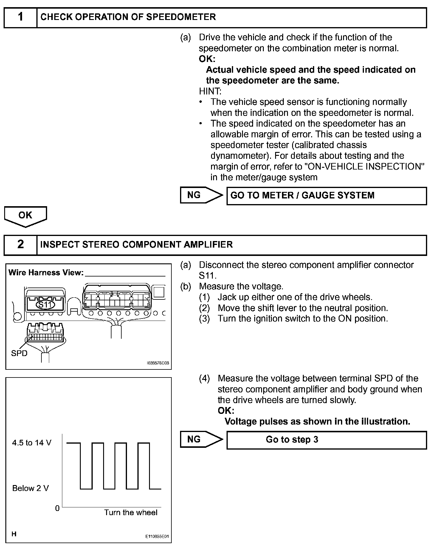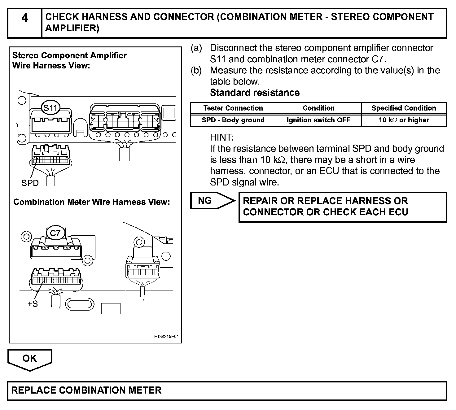 Vehicle Speed Signal Circuit between Stereo Component Amplifier and Combination MeterDESCRIPTION